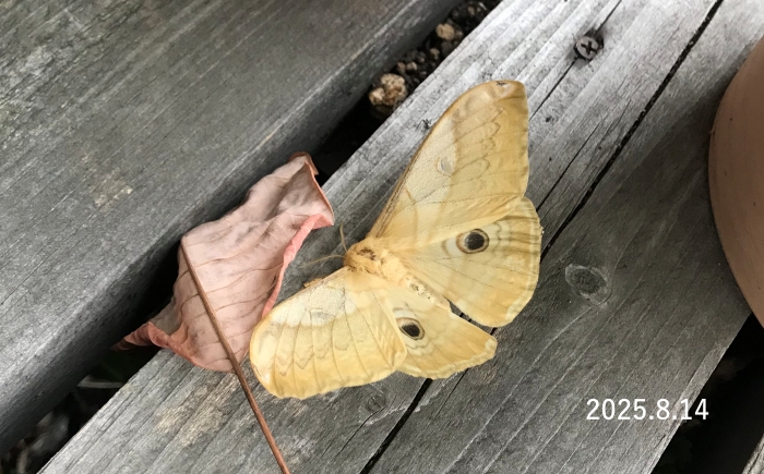 お盆前後にいつも現れる。今年もクスサンは「大発生」といえるかも。今朝も南公園にて5頭を確認。